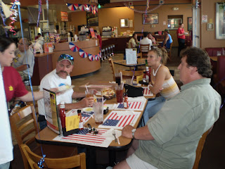 Then it was a lobster bisque with prawns and parsley cream. We really should have quit right here, but no...it's a four course meal so let's move on! Now Thunder has picked out a bottle of Merlot to go along with the main course. Our main course was Tiger Prawns, a lamb chop and a chicken breast chop. This came with a baked potato and sauteed corn in a red wine sauce. At this point I knew we needed to-go boxes because I was already stuffed.